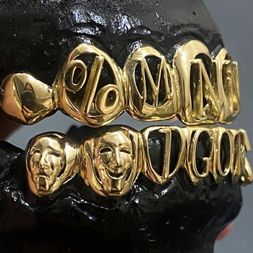 Grillz 8x8 em ouro maciço 18k, 100% personalizado em 3D para lançamento de álbum ““MEU NOME NÃO É IGOR” com máscara chora agora ri depois.