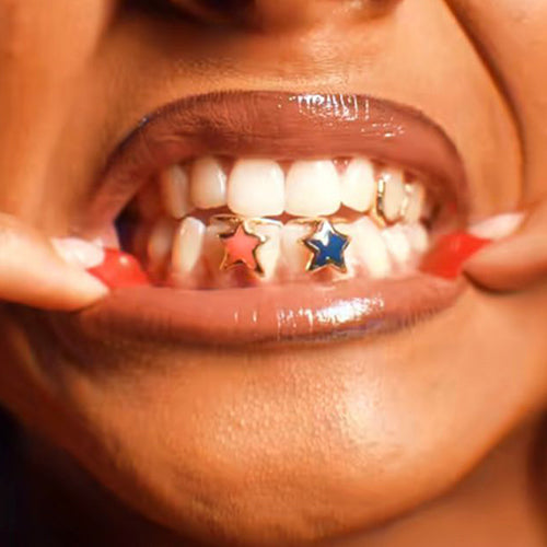 Grillz prata 1000 banhado a ouro 18k, estrela personalizado artesalmente, feito para comercial da white horse com a rapper Júlia Costa.